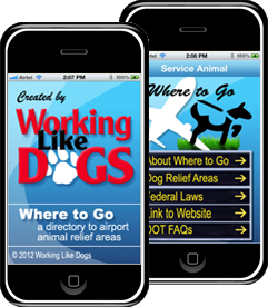 While many airports now have dog relief areas, they can be difficult to locate. When people are traveling with their dogs, whether pets, assistance dog or other types of working dogs, the “Where to Go” app gives them the information they need when their dog has got to go with just a click.