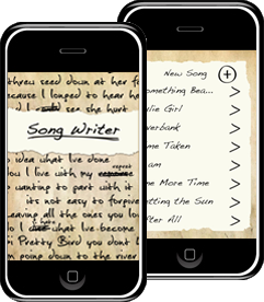A simple, sleek, and effective way to write and record your songs. When inspiration hits make sure you're ready with Song Writer! Beautifully designed with the artist in mind. Write your lyrics and chords as you would on paper, then record a sound bit; play your guitar, piano, or just humm the melody that's in your head. Draft the entire song right on your iPhone or email it out to yourself and friends to work on later. Song Writer lets you keep all your projects right in your pocket because you never know when inspiration will hit ... jot lyrics when walking on the beach, on a ski lift, before you fall asleep in bed, anywhere! Don't be without Song Writer when you have that great idea for a song!